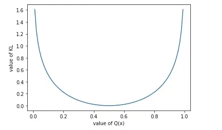 从函数图像上,我们很容易看出,当Q(x)=0.5的时候,KL散度取最小值,最小值为0。我们对上面的公式做一个变形: