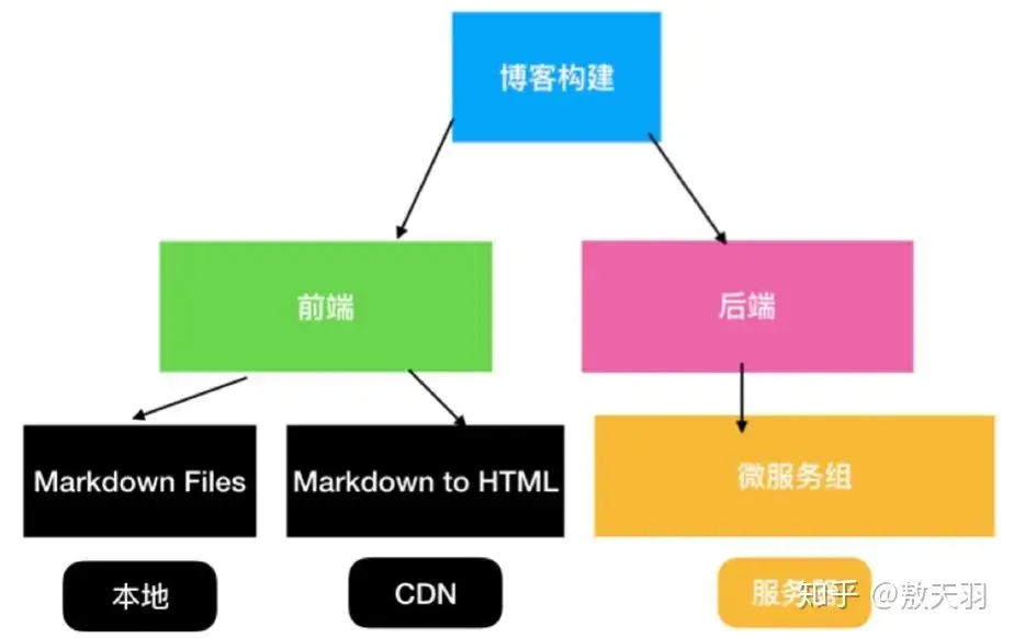受到阮老师启发,于是我糊了一个架构图,一个博客系统的思路图,基本上和市面上的 Jekyll 和 Hexo 一样,当时我的设想是,把评论之类的全部抽出来,这样打的时候最多打挂评论之类的,对于博文本身不会有任何影响。后来我回去查了一下,发现这不就和市面上的一样嘛——不错!