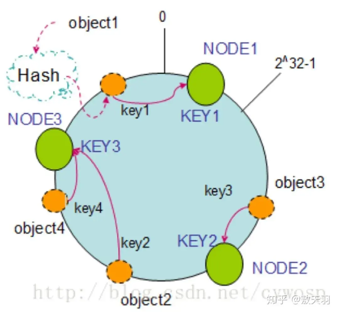 一致性 Hash 就是把对象映射在 232 个桶空间里,像一个闭合的圆环,当然,实际上,我们将机器也映射到这个圆环中,比如利用别名或者 IP,顺时针将对象将内容存储到离自己最近的机器中,删除和添加节点也一样,添加和删除节点之后,根据顺时针迁移,原来的对象会进行重新计算。