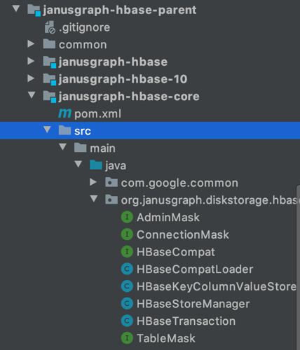 JanusGraph 关于 HBase 的代码,有好几个文件夹,但是真正核心的类,其实就是 HBaseStoreManager 和 HBaseKeyColumnValueStore 两个类。