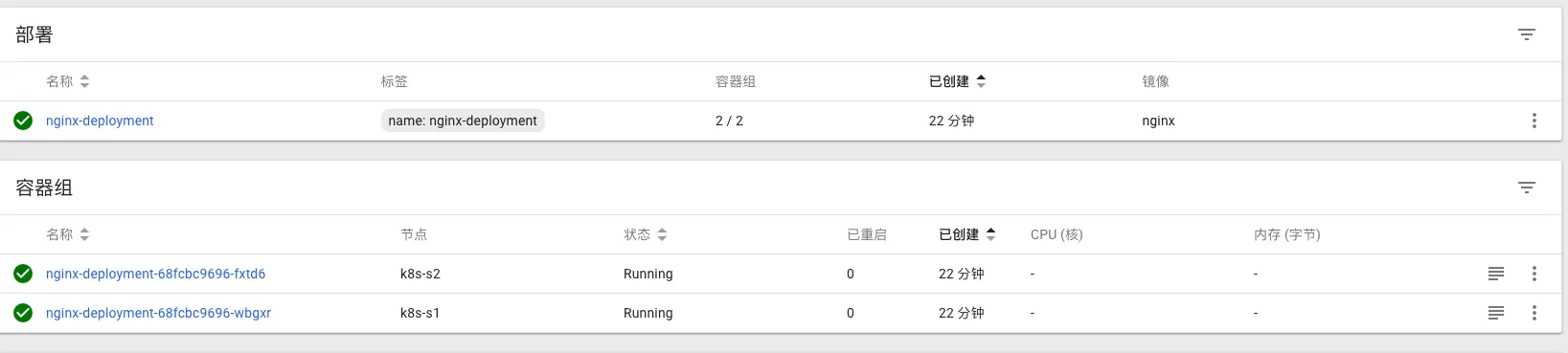 我们经常使用的还是上面前两种方式,我们先创建一个nginx-deployment镜像2个Pod以便于接下来的使用