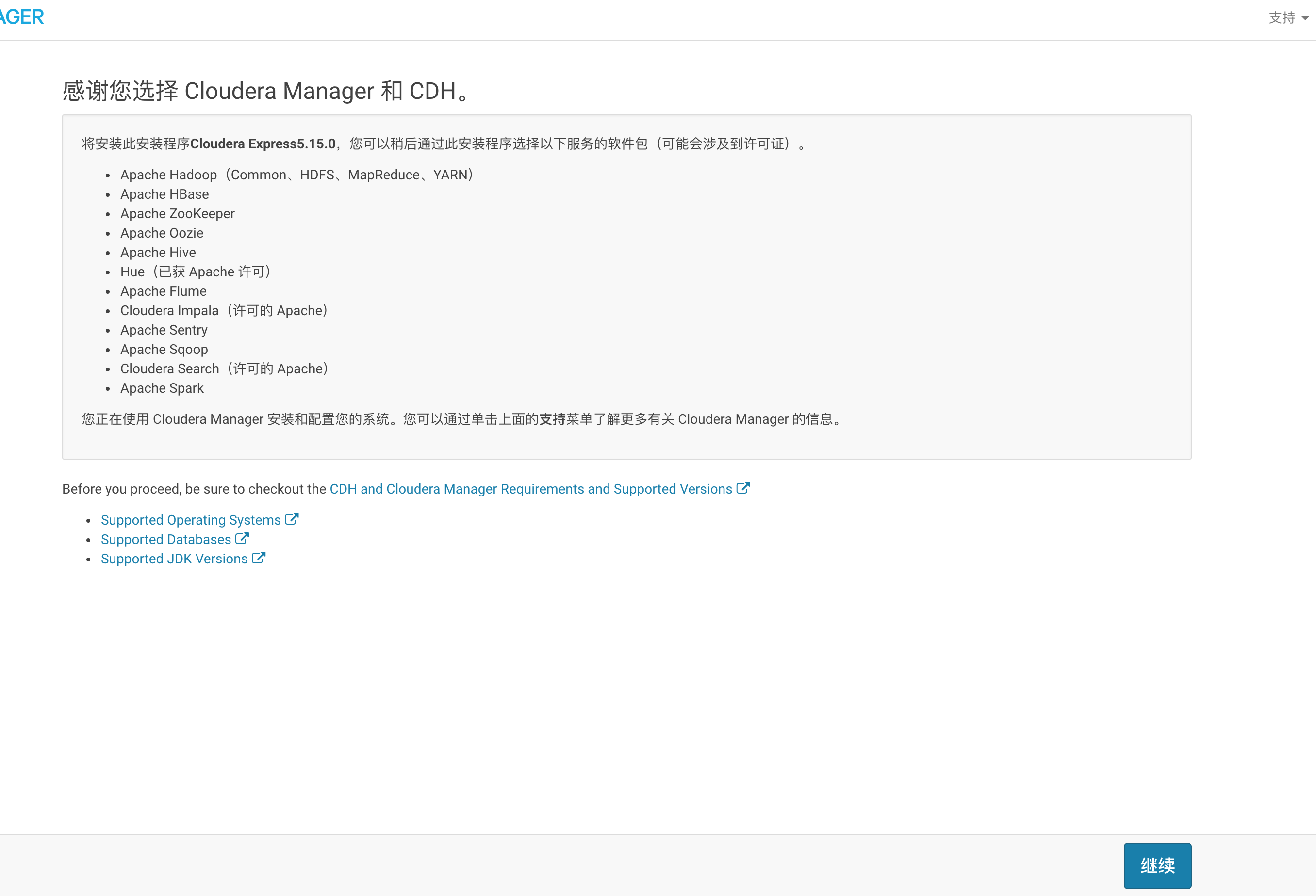 准备工作已经完成,接下来我们就要正式的开始在我们服务器集群上搭建CDH