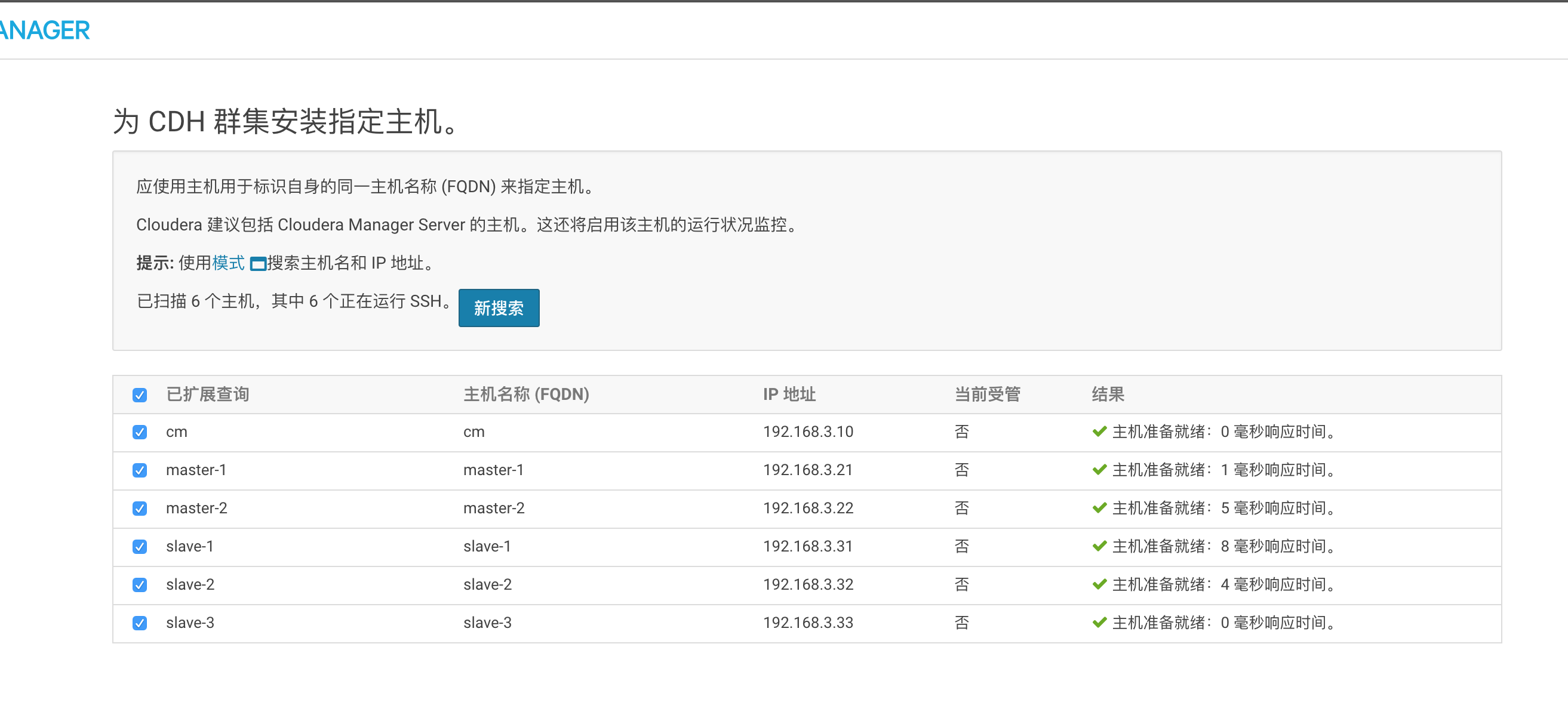 当我们已经把cm-service和cm-agent安装完成之后,接下来我们就要到最重要的部分了,安装Hadoop组件