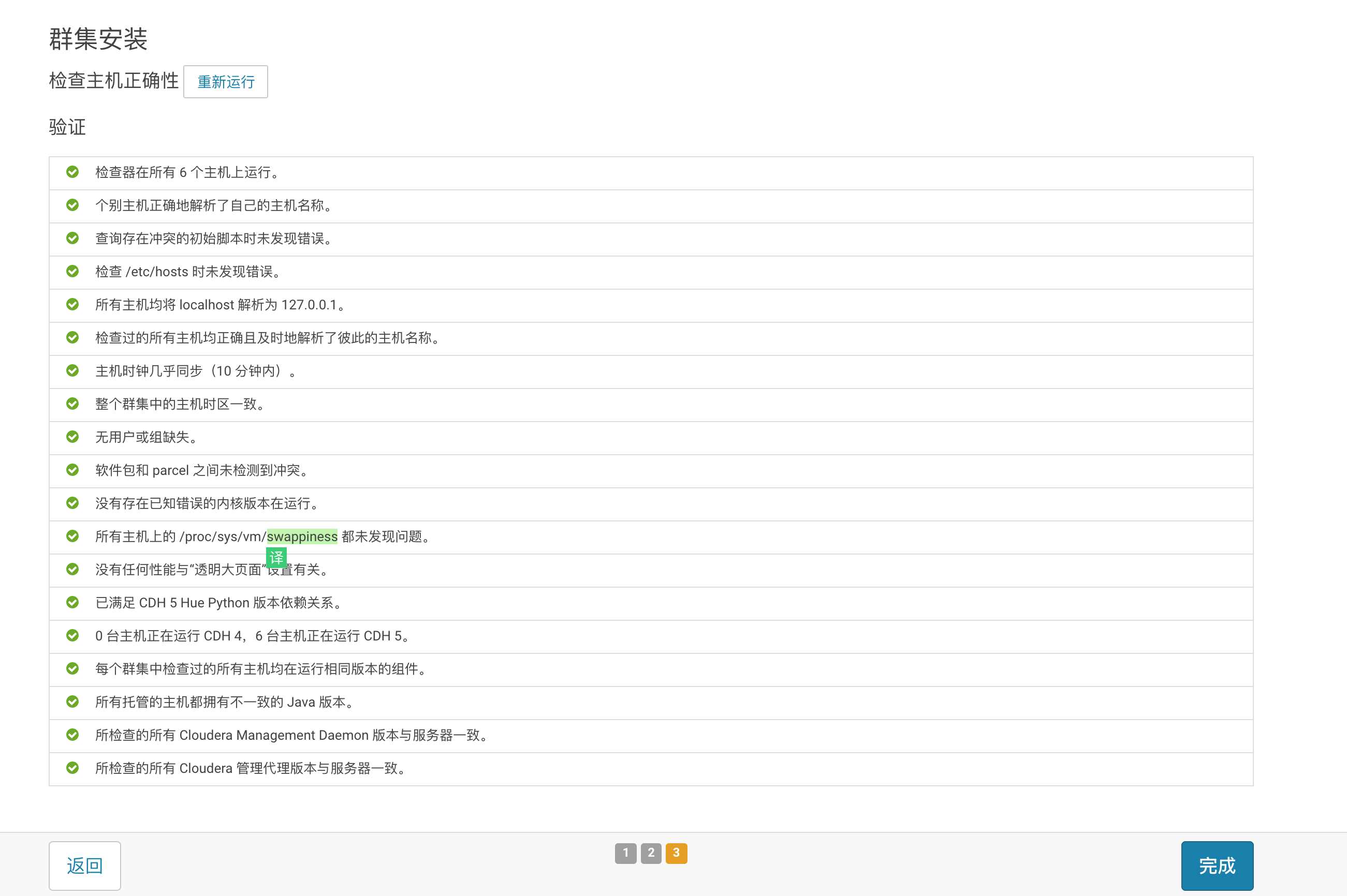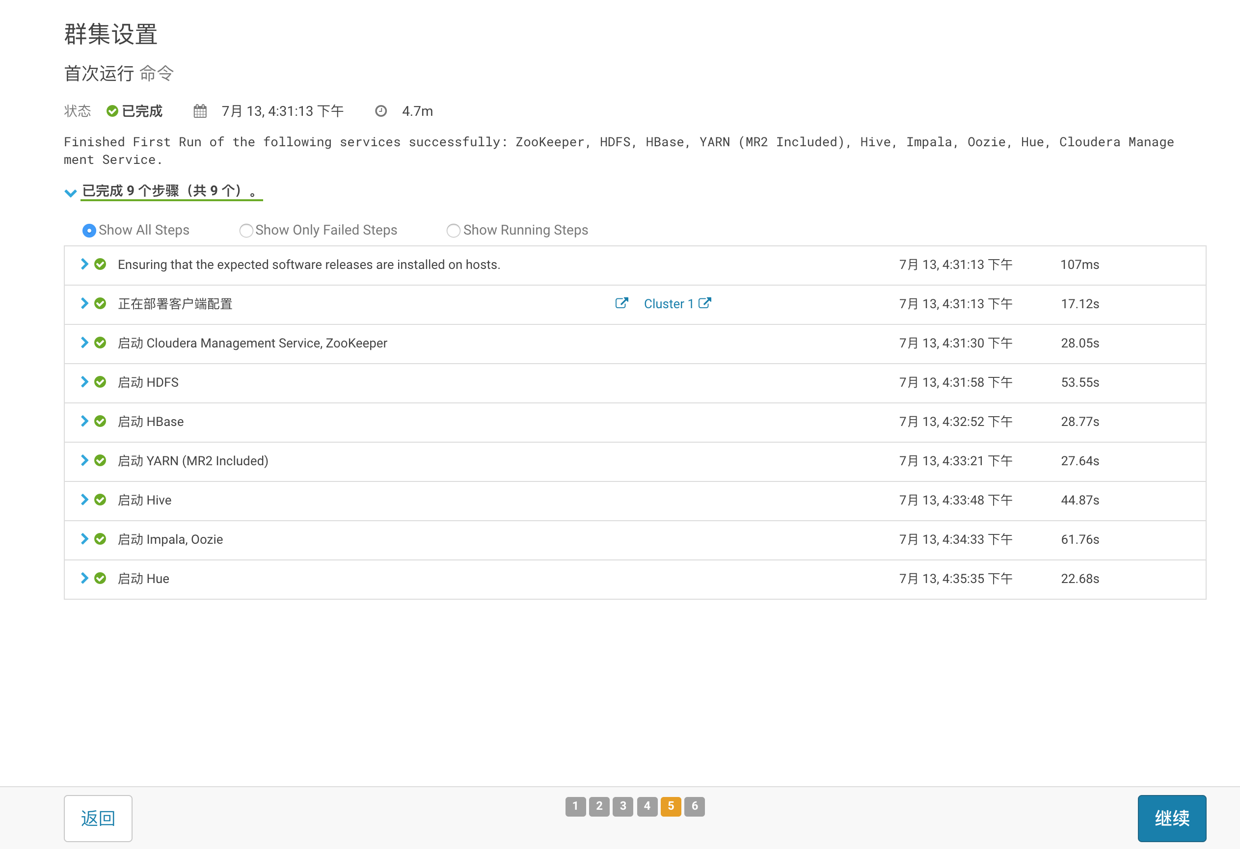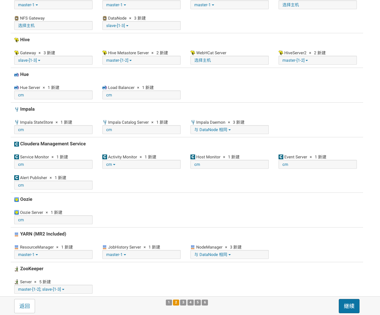 PS:如果大家发现安装完成之后有组件挂掉,并且不能解决可以尝试减少安装的组件数量,比如oozie和hue可以在后面安装,先安装好核心组件