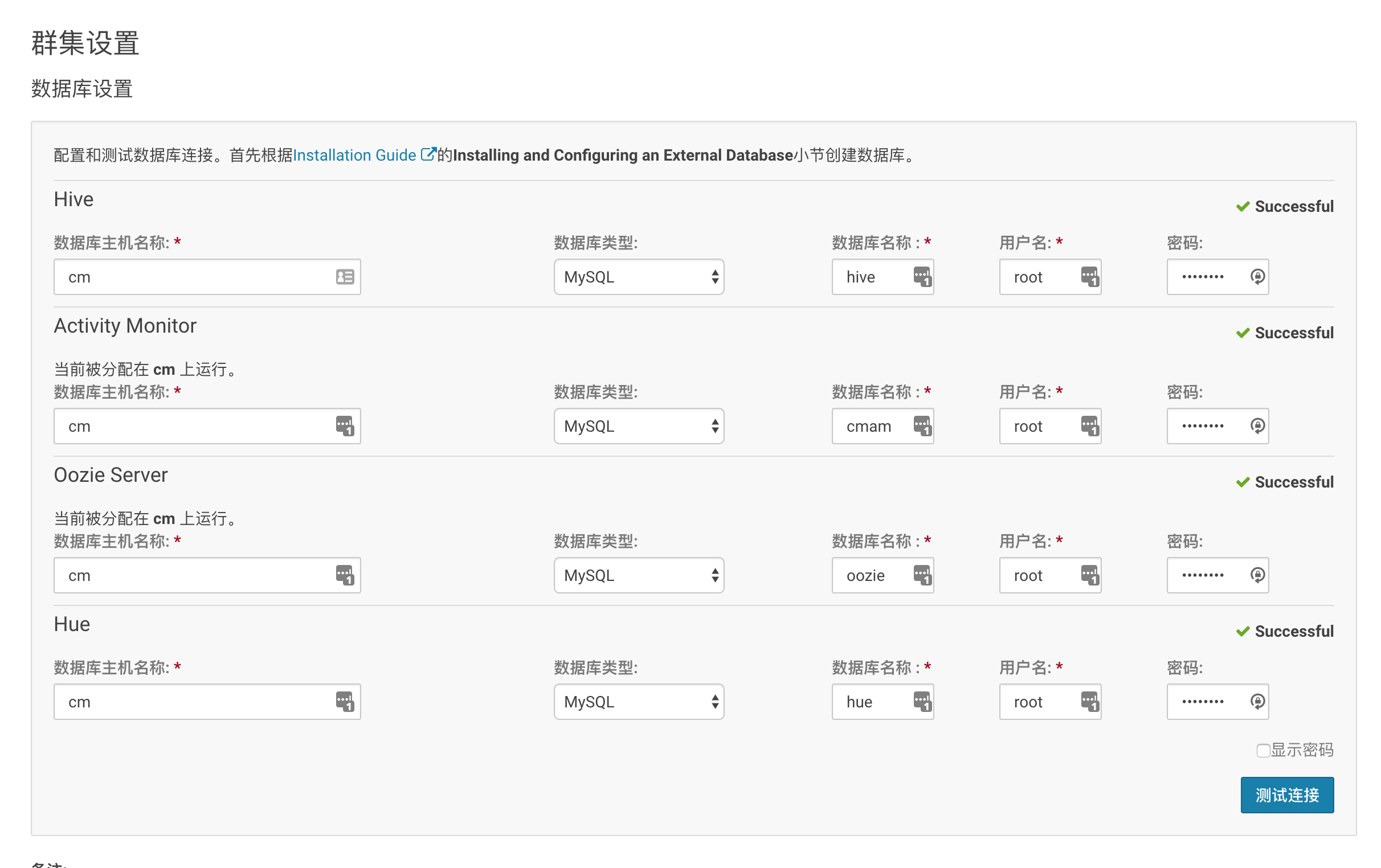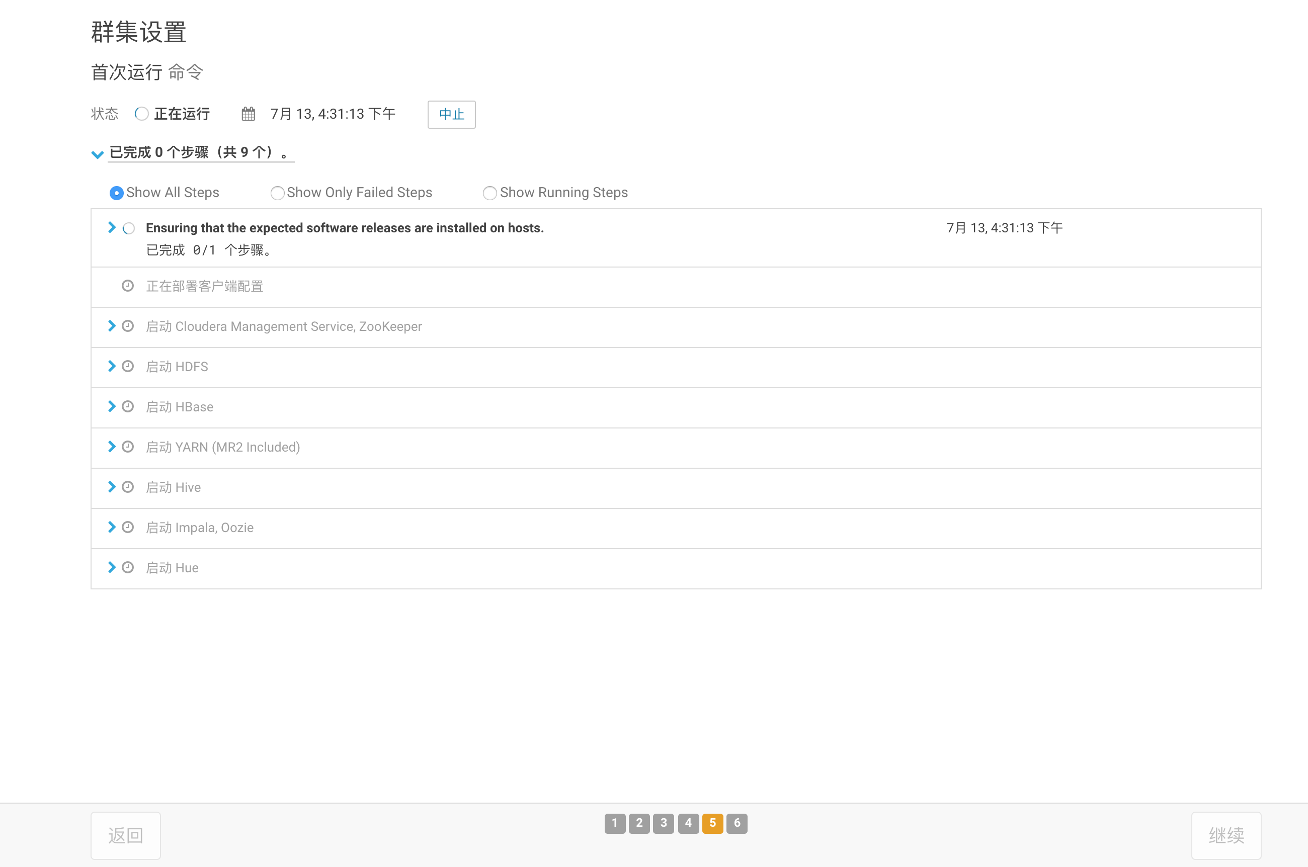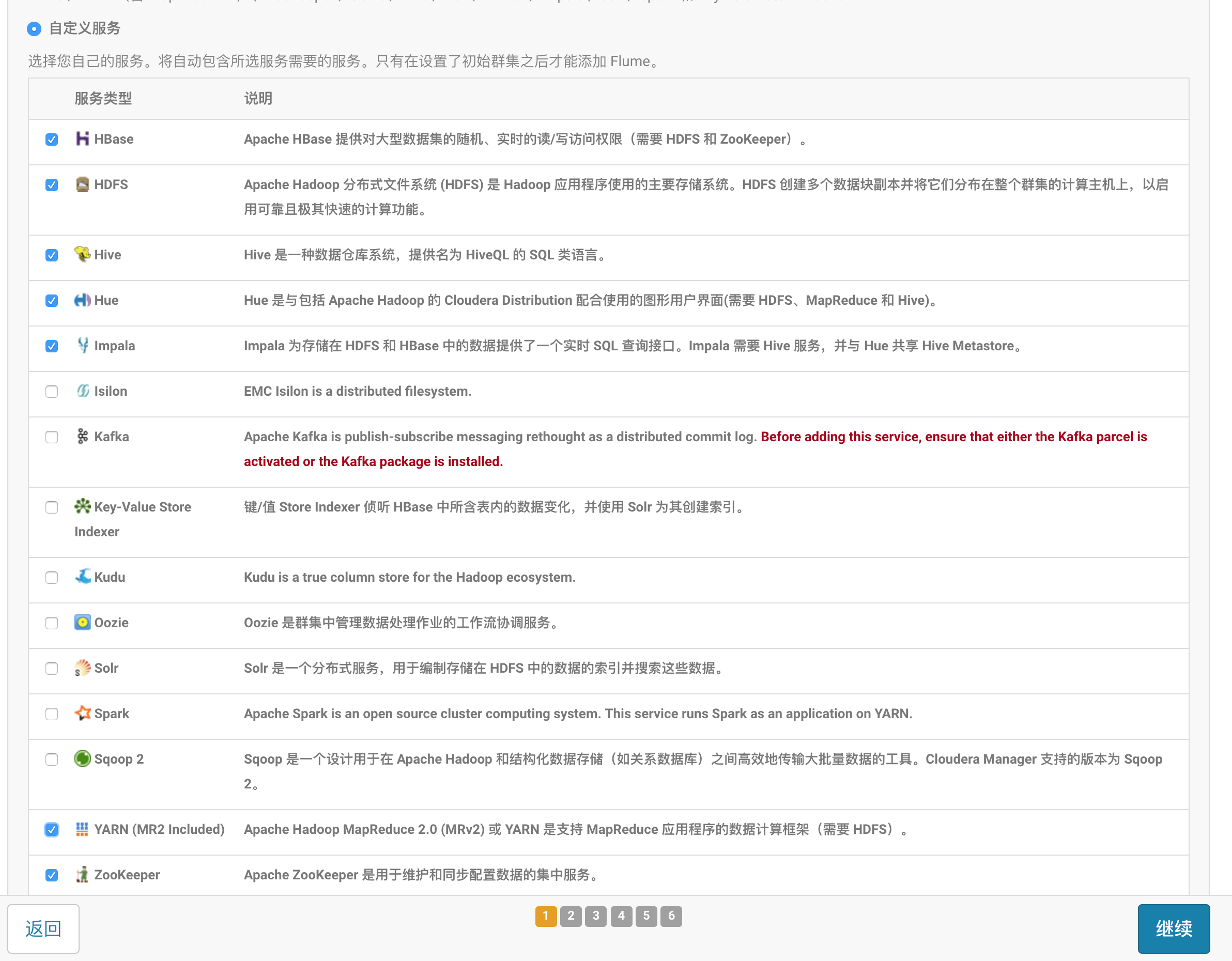 PS:如果大家发现安装完成之后有组件挂掉,并且不能解决可以尝试减少安装的组件数量,比如oozie和hue可以在后面安装,先安装好核心组件