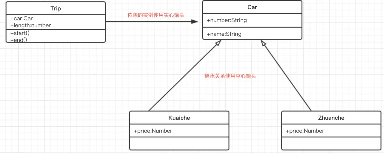 1、画出车的父类,有两个属性:number和name,添加属性和方法要使用+