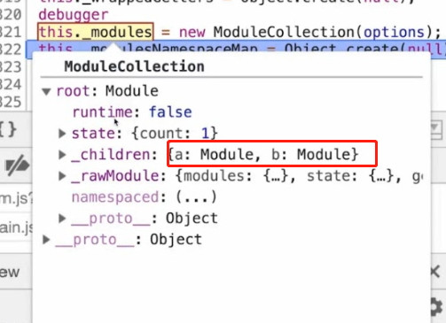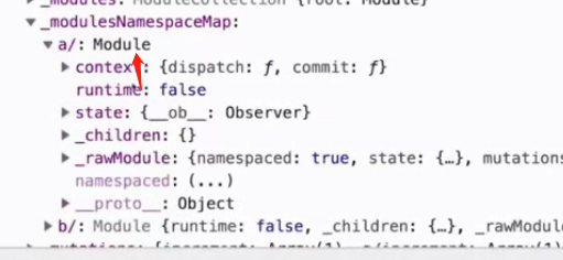 根据namespace,通过store._modulesNamespaceMap去拿到,举个示例:在初始化阶段呢,就会构造这个Module,