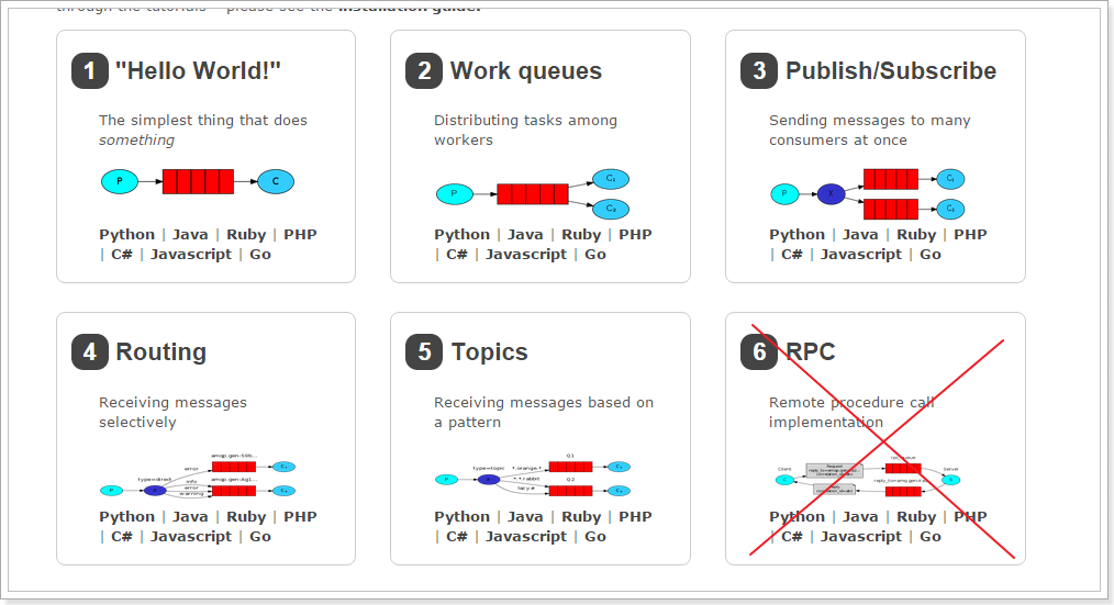queue:消息队列,图中红色部分,类似信箱,可以缓存消息,生产者向其中投递消息,消费者从中取出消息。