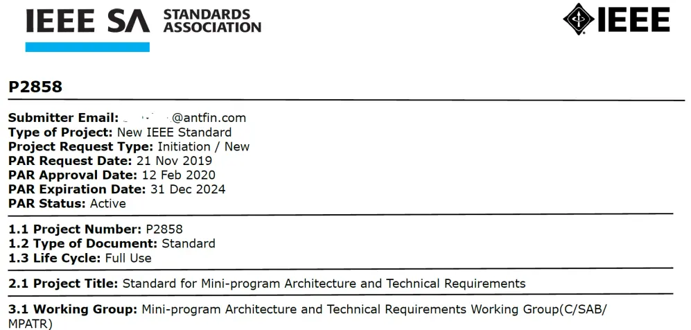 此外,由蚂蚁金服牵头在IEEE立项的小程序技术标准还将识别出小程序开发及应用中可能面临的安全风险,并讨论制定统一的安全要求,确定安全底线以确保小程序应用的安全和健康发展。