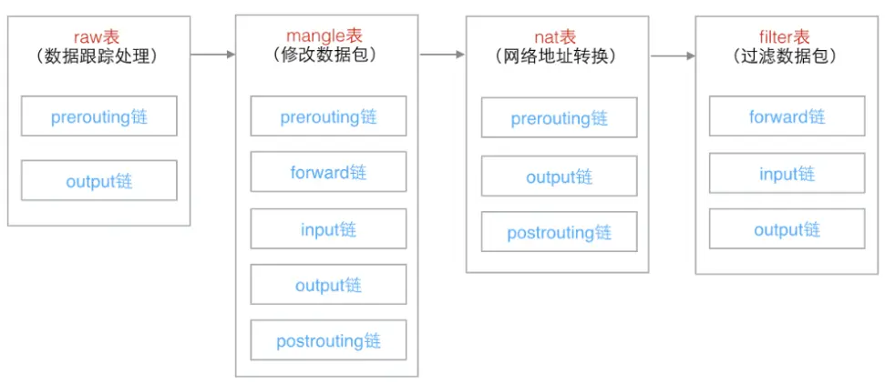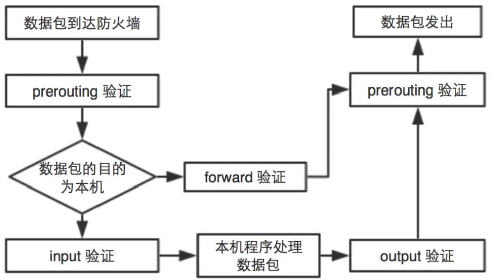 上述规则从左到右,优先级依次降低。当数据包处理到挂接点时候,会依次调用挂接点处的函数,直到明确数据包是接收或拒绝。