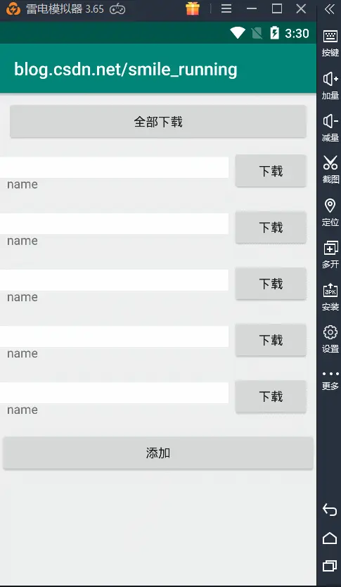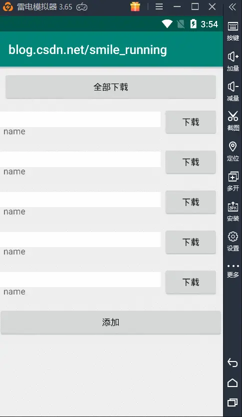 首先,我们点开始下载,只会下载前面三个,为了证明线程的复用效果,我这里又添加了一个按钮,在这个按钮中继续添加后面两个下载任务。