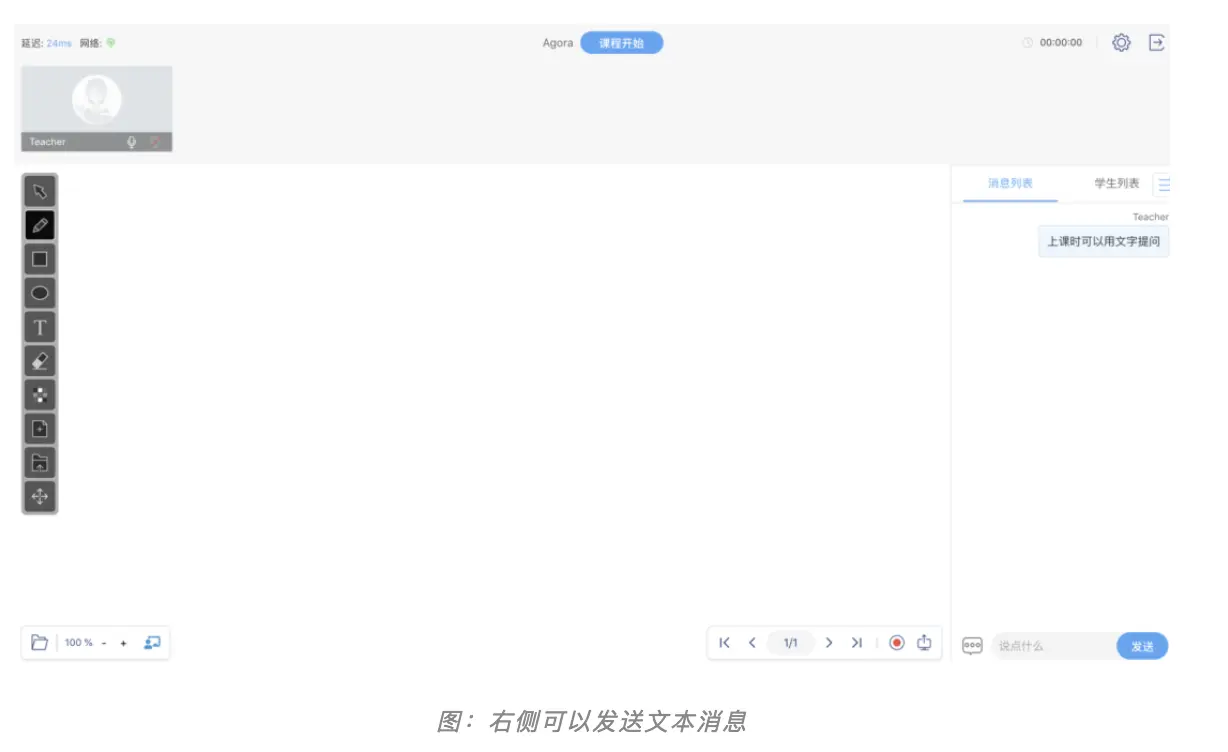 文字消息:除了连麦以外,学生还可以通过文字消息在课堂中提问交流。