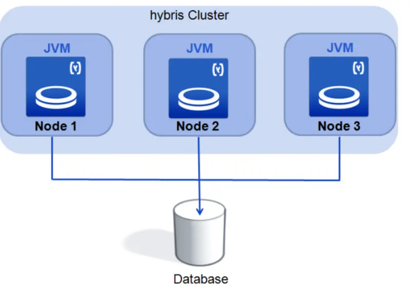 The core of a Hybris Cluster is a network communication system that makes sure the cache of each individual cluster member only holds valid data. The nodes in the Hybris Cluster communicate using TCP (JGroups) or UDP, by sending signals to other nodes that mark some cache entries as invalid because a database item has been changed. The following is the overview of the cache invalidation process: