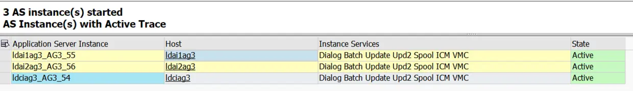 比如在AG3用tcode SM53查看,发现其是由3个node组成: