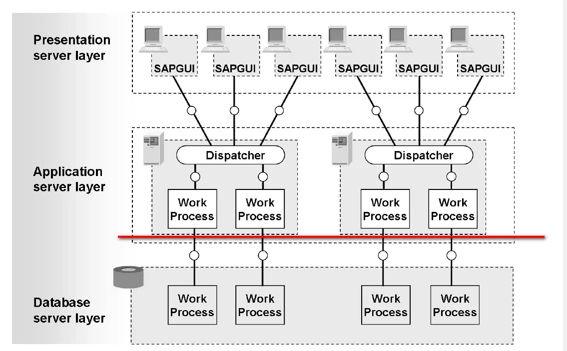 而SAP Netweaver经典的3层layer里就提到Application layer也支持multiple node: