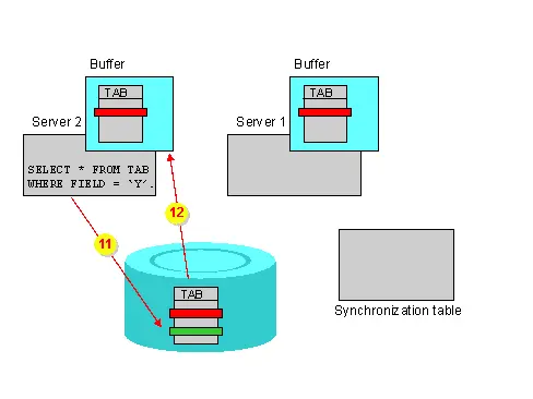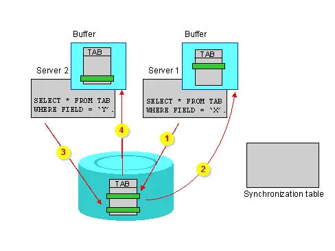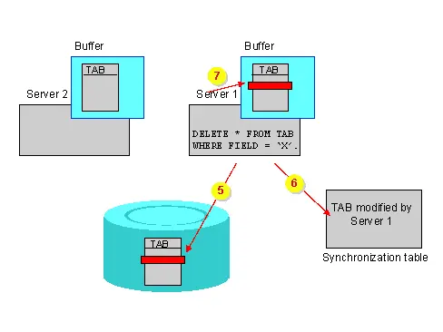 (1) A description of a product has changed. Therefore, all cache entries referring to the product are invalid. (2) A cluster node where the modification has been done sends a notification to all cluster nodes that all cache entries holding the product are invalid. (3) Nodes that hold the product in their cache discard the cached data of the product and re-retrieve the product from the database the next time the product is used.