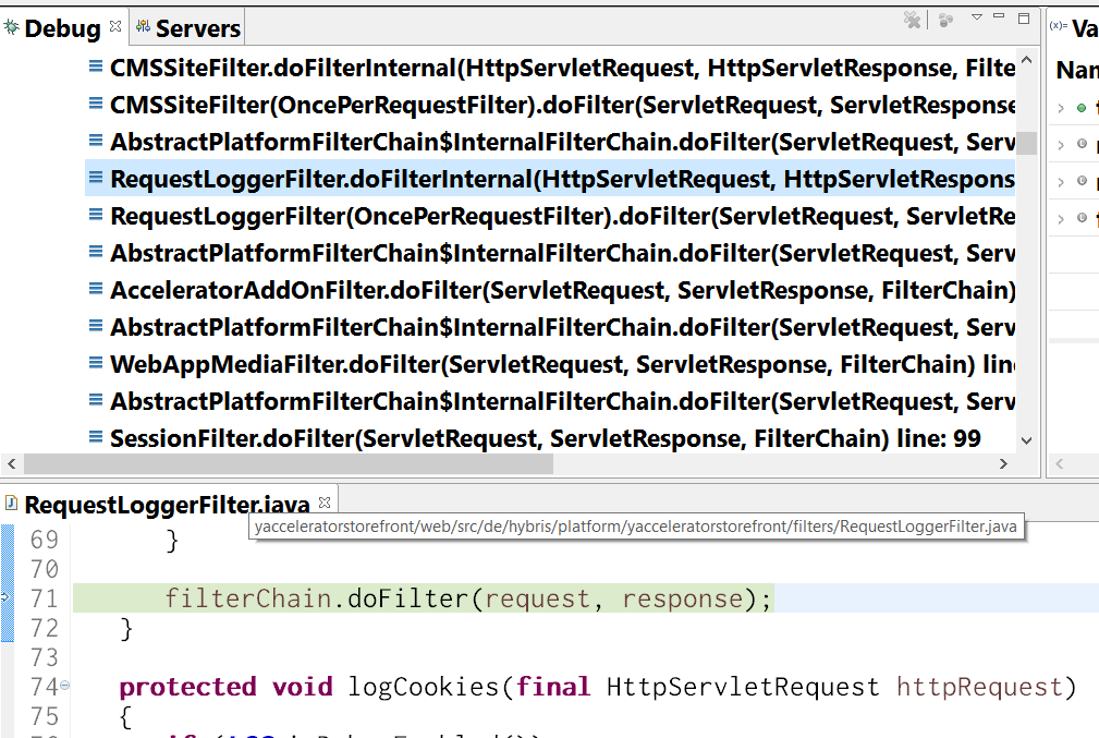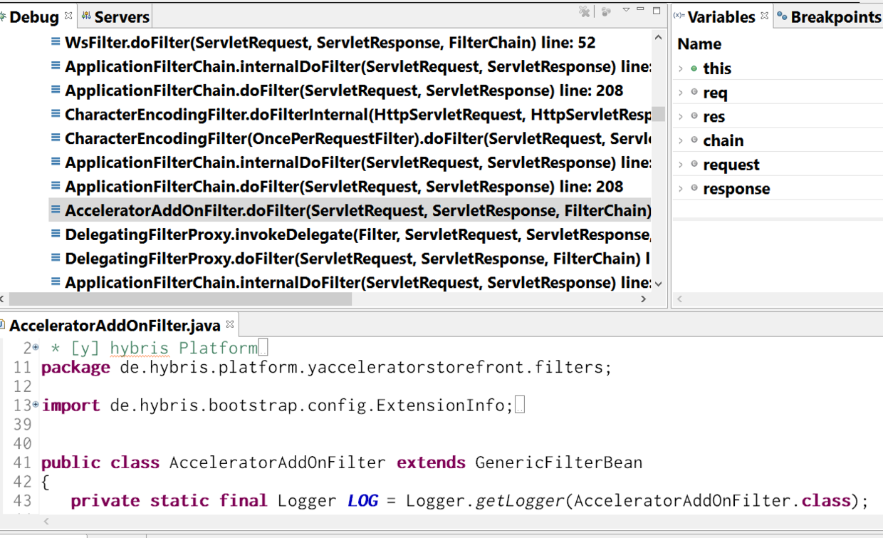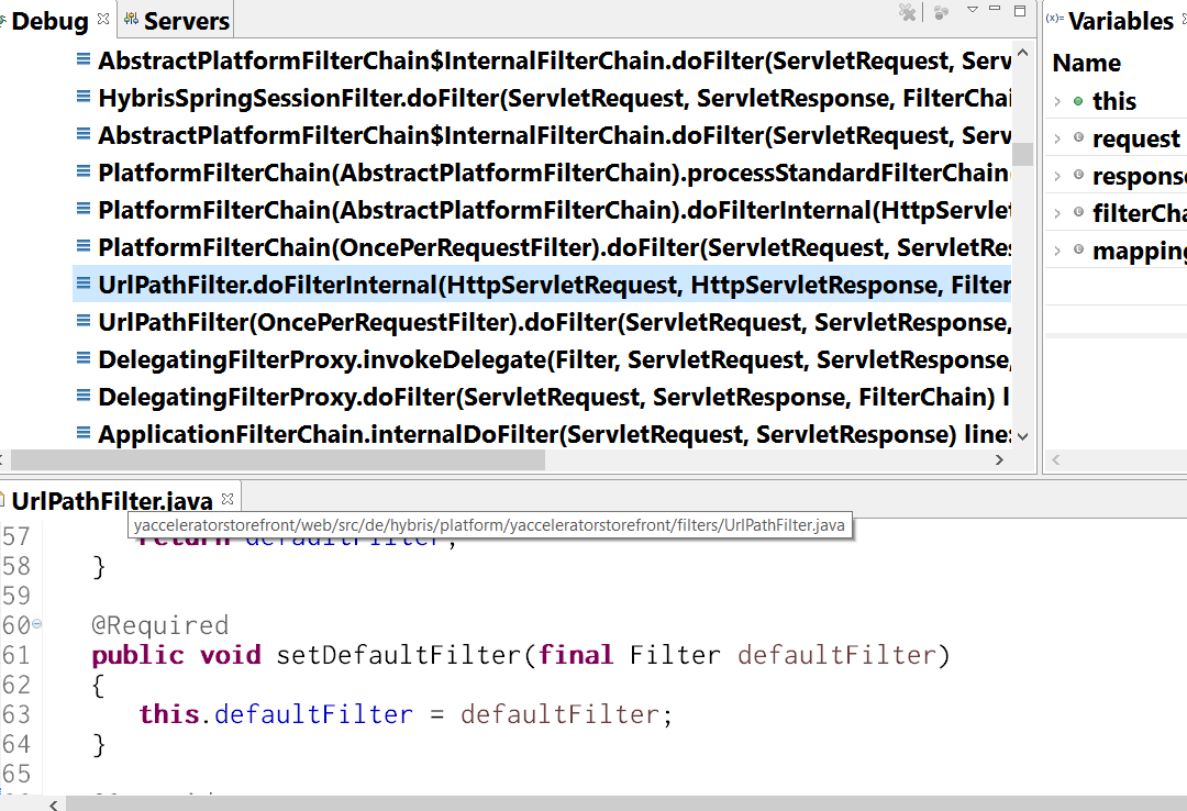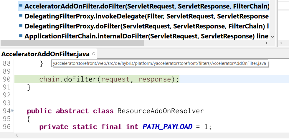 上面这些filter都是Hybris开发人员开发的filter,按照顺序出现在runtime chain call里。