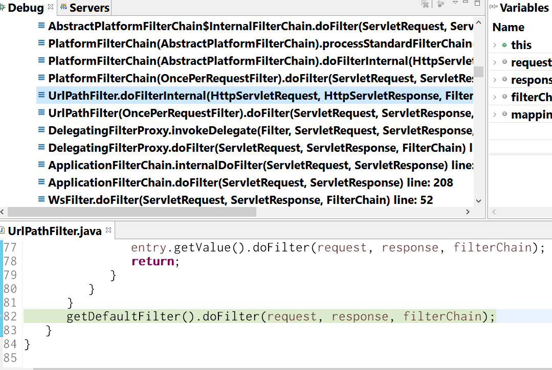 通过debug会看到有一堆的filter参与进去: