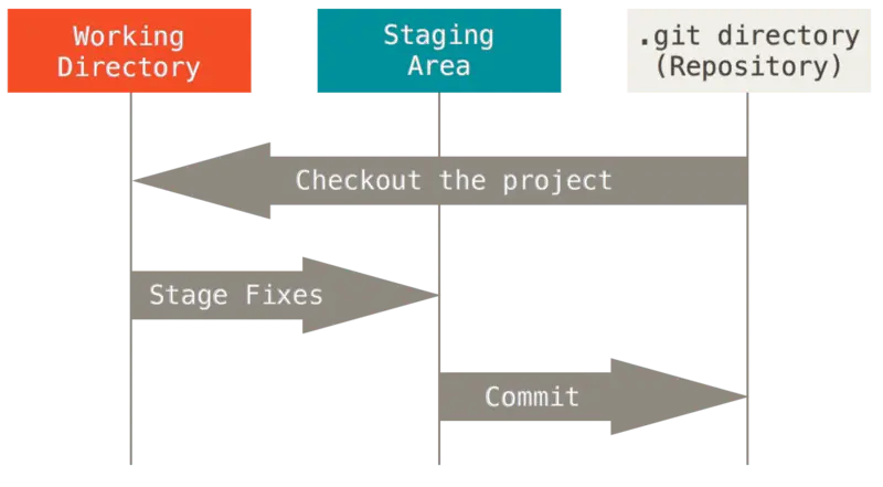 如果Git目录中保存着特定版本的文件,就属于已提交状态。 如果作了修改并已放入暂存区域,就属于已暂存状态。 如果自上次取出后,作了修改但还没有放到暂存区域,就是已修改状态。在Git 基础一章,你会进一步了解这些状态的细节,并学会如何根据文件状态实施后续操作,以及怎样跳过暂存直接提交。