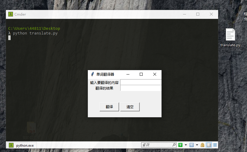 于是想起以前学习python的时候好像写过一个翻译器, 便拿过来稍作修改, 已解决现在的困境(我需要一个很小的浮窗翻译器)