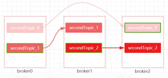 ➢ 针对 secondTopic 这个 topic 的 3 个分区对应的 3 个副本