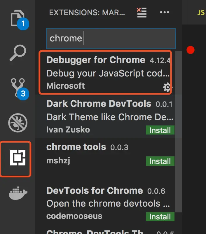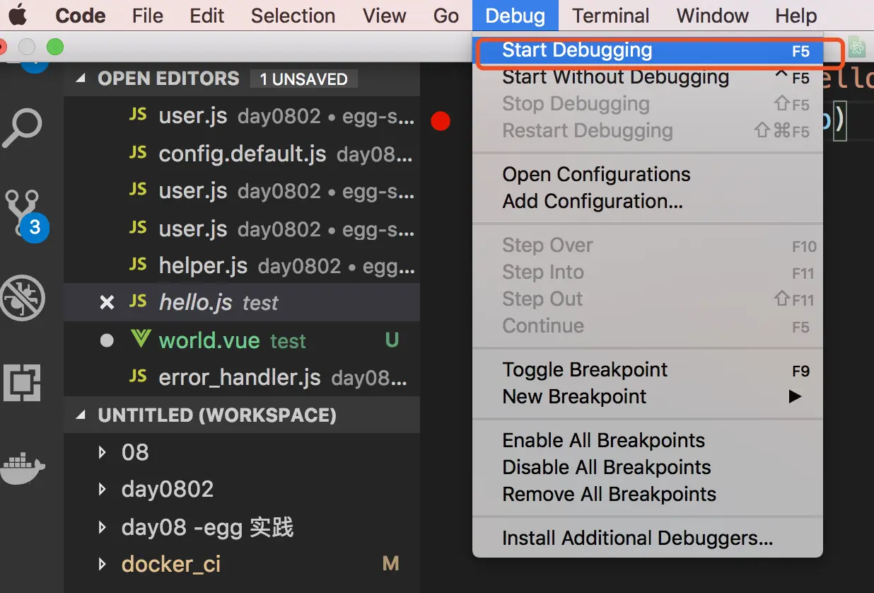 断点调试 先让代码出现小红点 然后选择红框里的调试