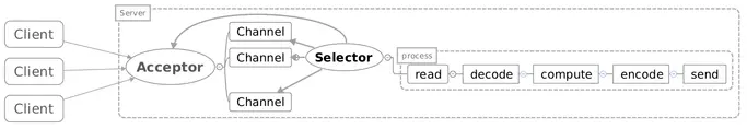 Synchronous Event Demultiplexer支持,比如Java中的Selector支持,操作系统的select系统调用支持。 - Reactor模式在IO读写数据时会在同一线程中实现,即使使用多个Reactor机制的情况下,那些共享一个Reactor的Channel如果出现一个长时间的数据读写,会影响这个Reactor中其他Channel的相应时间。例如在大文件传输时,IO操作会影响其他客户端的时间,因而对于这种操作,使用传统的