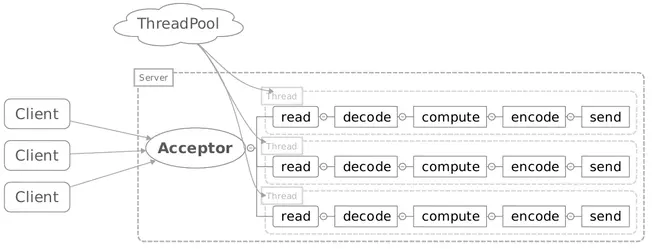 Reactor模式的核心是解决多请求问题,如果有特别多的请求同时发生,不会因为线程池被短时间占满而拒绝服务。一般实现多请求的模块,会采用线程池的实现方案,这种方案对于并发量不是特别大的场景是足够用的,比如单机TPS 1000以下都是够用的。