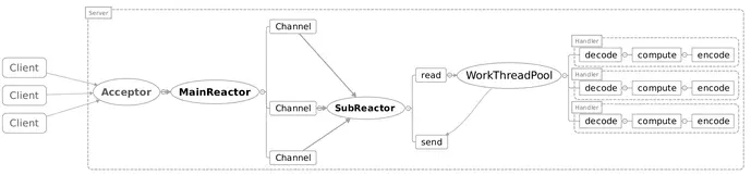 accept连接交给Sub Reactor处理,主Reactor用于响应连接请求。 - Sub Reactor 处理