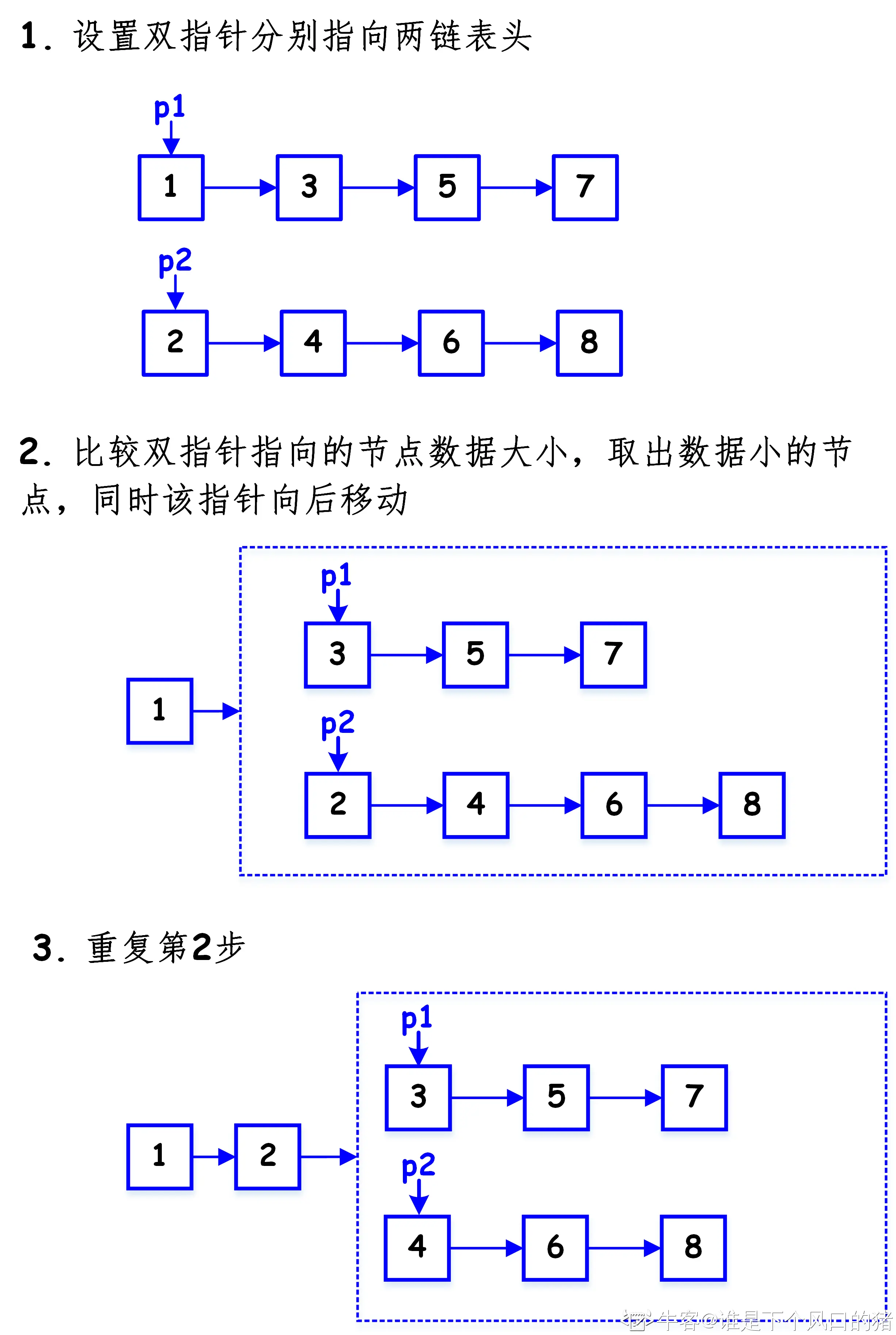 3. 将两个有序链表合并为一个新的有序链表并返回。