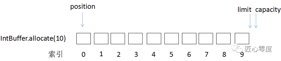 IntBuffer buf = IntBuffer.allocate(10) ; // 准备出10个大小的缓冲区