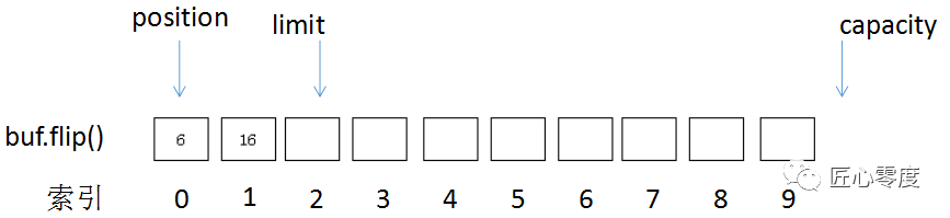 调用flip()方法会将position设回0,并将limit设置成之前position的值。
