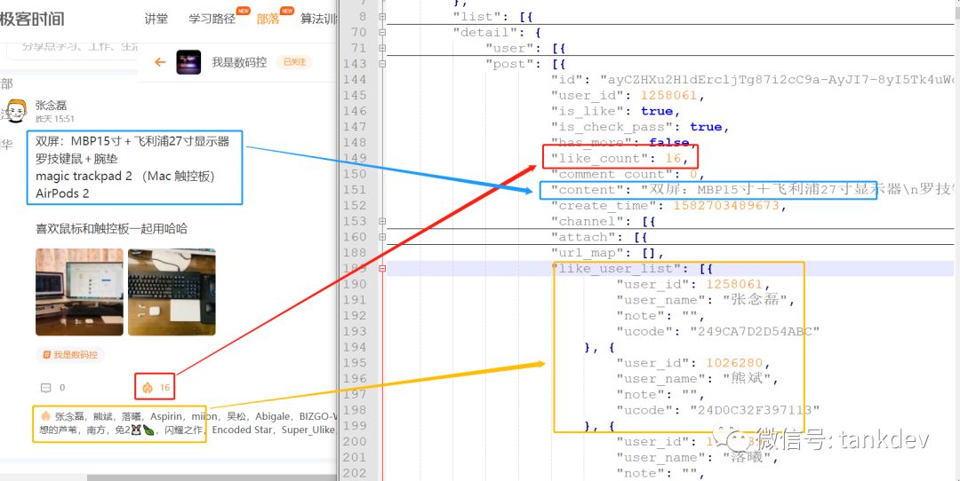 极客时间点赞列表里面没有返回点赞的时间,有时间字段的话可以分析下点赞频率看下是机器人还是手动点赞,我觉得后台肯定是有存储的