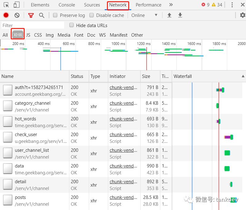 network下的xhr选项,这里列出了所有的ajax请求接口
