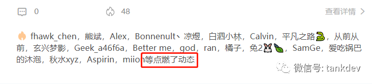 观察点赞列表可以发现当点赞人数超过20个,会出现等点燃了动态字样 ,不经意鼠标一点击分页显示了点赞人员,观察xhr 请求会发现请求的接口路径是https://horde.geekbang.org/serv/v1/likes/list ,参数和结果分析同动态列表不在赘述。