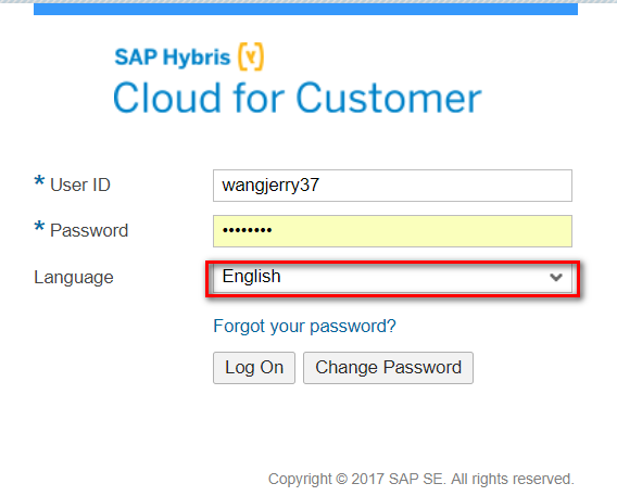 SAP Hybris Commerce,CRM和C4C的登录语言选择 已注销 2020-02-27 124 阅读1分钟 三个产品都有登录语言的选择:CRM C4C: Hybris: 看到tomcat log里加载的是zk-label_en.propeties: 以前做Fiori的时候,我们知道UI5是从浏览器的语言设置里determine语言的: navigator.languages 里存储的是我在Chrome 语言设置里配的4个language+region组合,ui5会取第一个作为locale来决定dateFormat. 要获取更多Jerry的原创文章,请关注公众号"汪子熙":