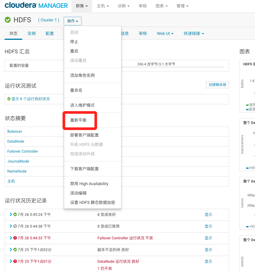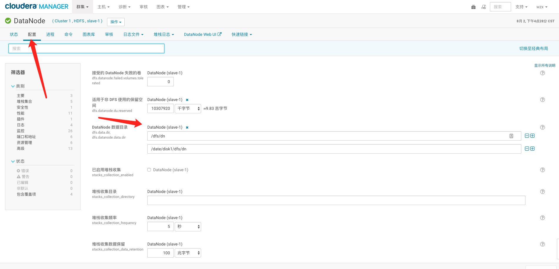 对于磁盘增加减少重新分配都是在大数据里面屡见不鲜的内容,当磁盘不够用或者磁盘损坏的时候我们怎么来替换磁盘和增加磁盘就成了一个很重要的事情了,我们先通过cm控制端进入到其中一个datanode管理页面