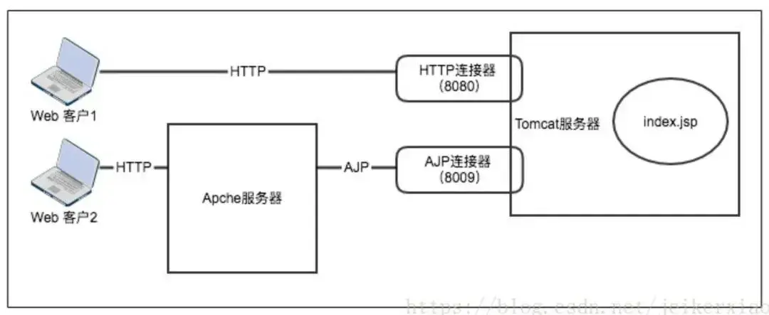<Connector port="8009" protocol="AJP/1.3" redirectPort="8443" />Tomcat服务器默认对外网开启该端口 Web客户访问Tomcat服务器的两种方式: