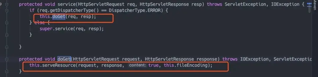 当请求被分发到org.apache.catalina.servlets.DefaultServlet#serveResource()方法