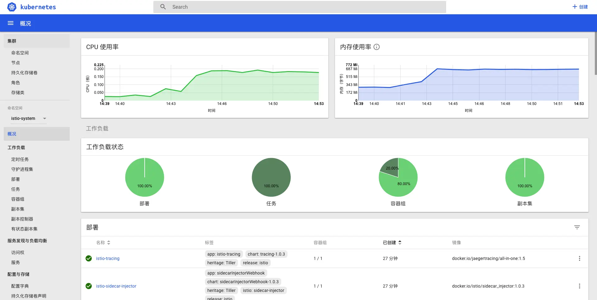 > kubectl apply -f istio-1.0.3/install/kubernetes/istio-demo.yaml