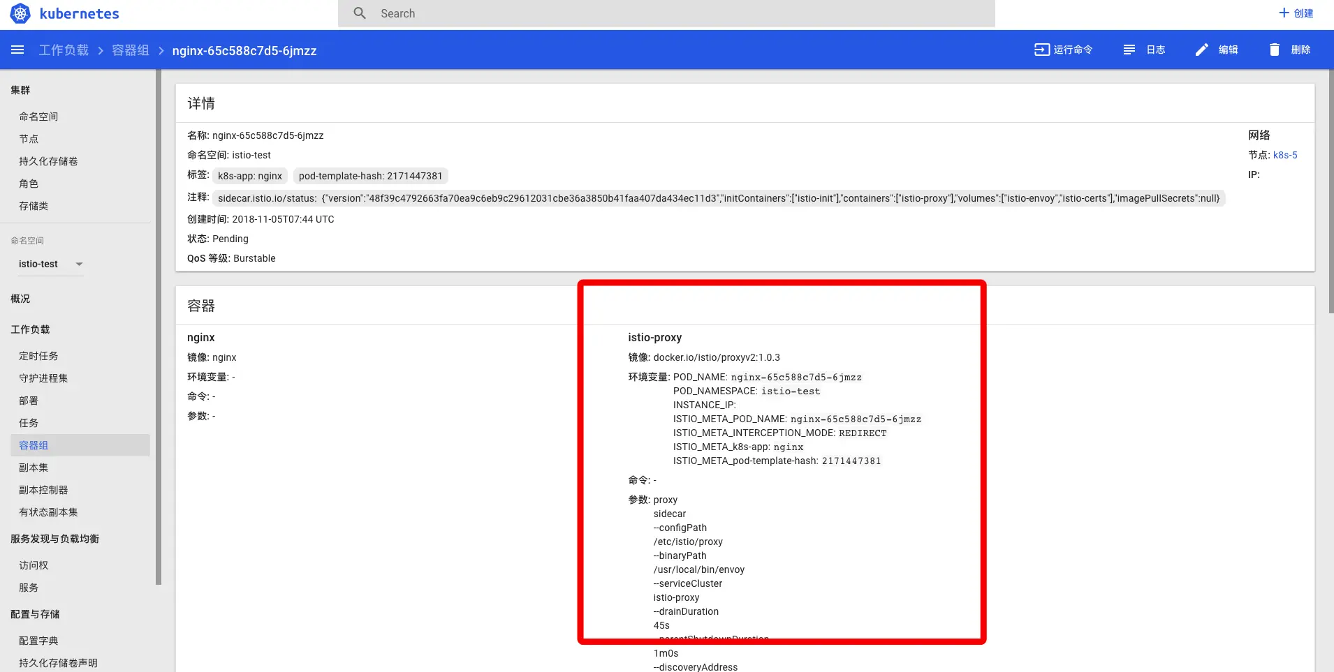 我们在istio中创建一个nginx镜像看看和正常的镜像有什么区别: