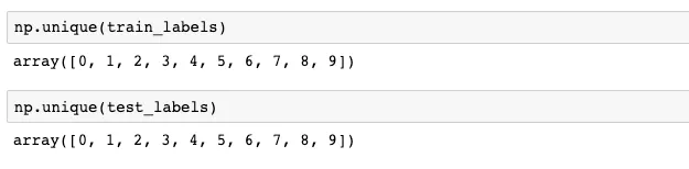 查看标签种类,我们可以看出标签表示了从0~9的数字,没有其他的错误数据。