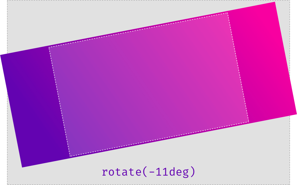 首先想到的是旋转(rorate)整个容器元素。但带来的问题是,100% 宽的 .diagonal-box 经旋转之后,不再能横向覆盖整个视口区域了。为此,我们需要增加宽度到 100% 之上来解决这个问题。