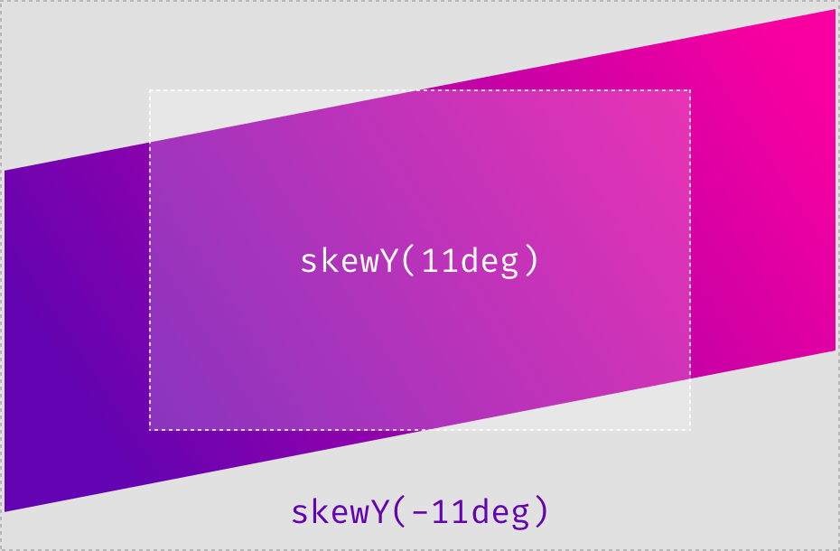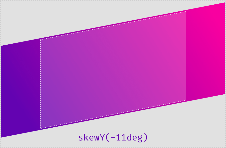 还有一个思路是,不用使用旋转,使用倾斜转换(skew-transformation)就能实现所需的效果,这个变换效果可能很少人知道。为了更加精确,我们仅沿 Y 轴对 .diagonal-box 做倾斜处理。