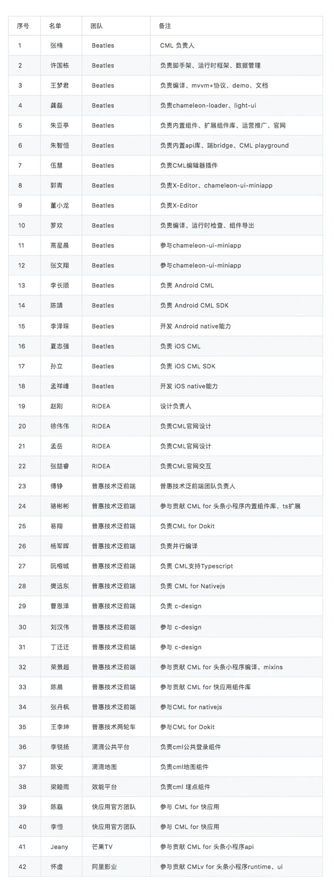 CML 团队受邀参加各大公司的技术分享 (58 同城、快手、深圳腾讯、快应用、百度、w3c 标准会议、Oscar 开源峰会),收到许多优秀工程师的有效建议,包括来自芒果 TV、阿里影业、快应用官方的工程师共建 CML 生态。芒果 TV 和阿里影业以及公司内普惠出行小伙伴独立扩展了头条小程序,快应用官方研发团队独立为 CML 扩展了快应用。同时,非常优秀的普惠技术泛前端团队,正在孵化 c-design 组件库 (一期进度 70%),以及 CML DoKit、滴滴云 for XEditor 等等。在此感谢他们~