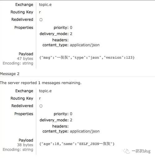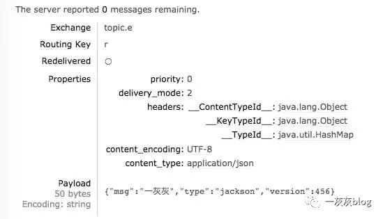 下面是通过 Jackson 序列化消息后的内容,与我们自定义的有一些不同,多了headers和 content_encoding
