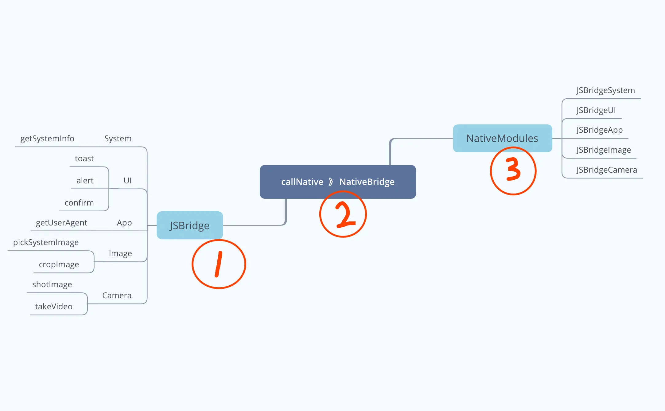 一个大型的 App 通常会具备以下 JSBridge 模块: