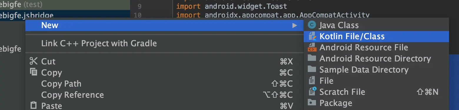 再在com.example.tobebigfe.jsbridge下创建kotlin文件,文件名WebActivity