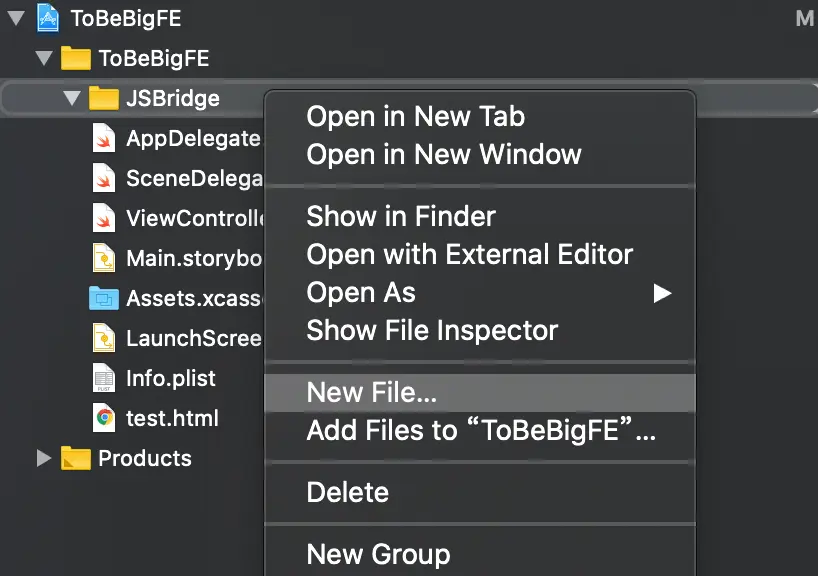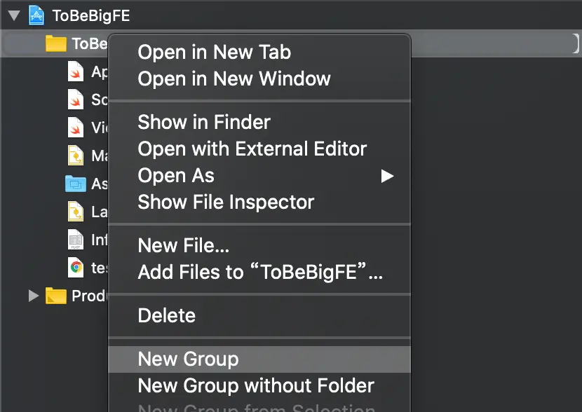 iOS内置没有toast功能,我们引入一个Toast.swift代码到文件夹ToBeBigFE