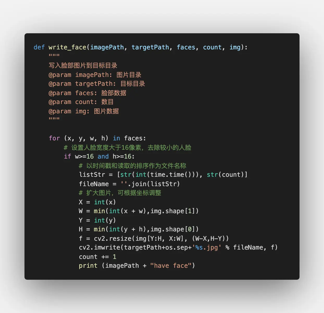 获得了人脸的位置后,我们只需要将这部分位置写入到新的图片中即可: